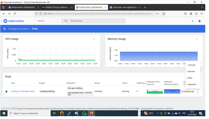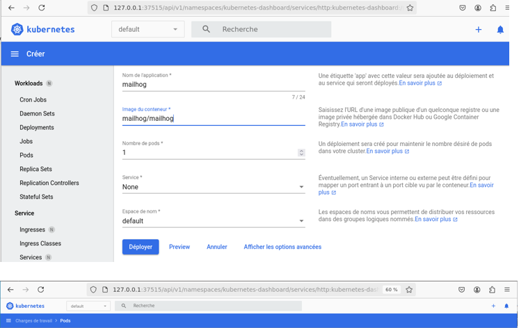 Tableau de bord et ligne de commande : la notion de pod , de déploiement, de service ainsi qu le cycle de vie d’un pod.