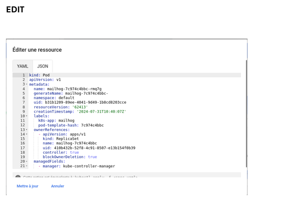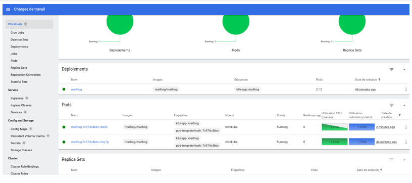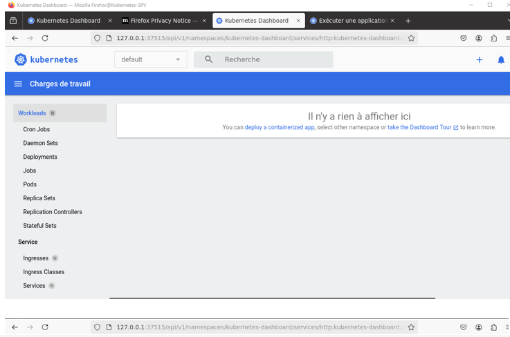 Le classement des éléments dans Kubernetes se fait à l’aide des espaces des noms (namespace). Dans le cas des éléments systèmes du cluster, ces derniers sont hébergés dans l’espace des noms kube-system.