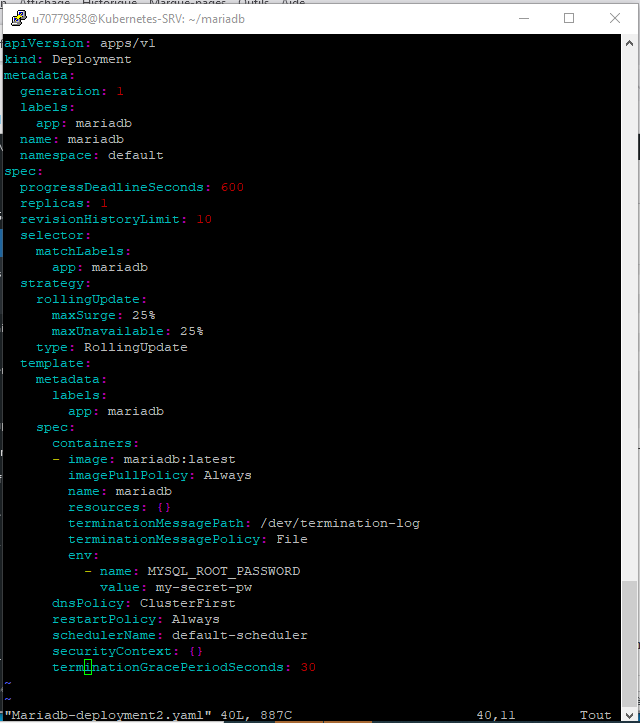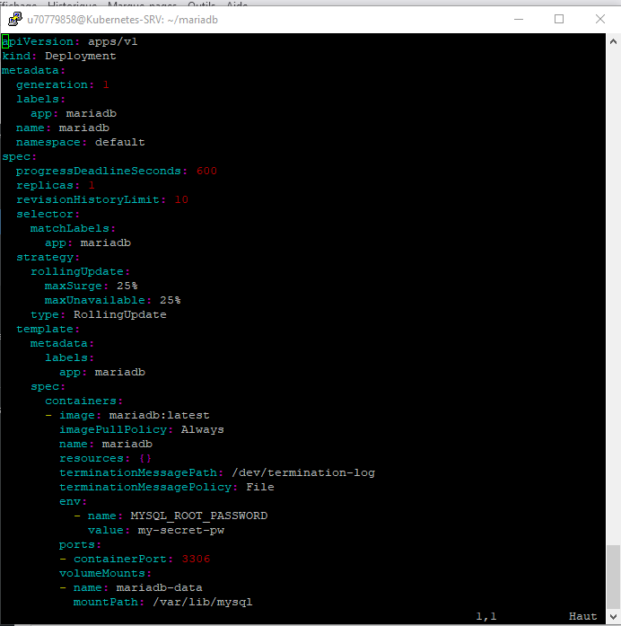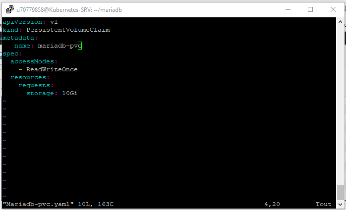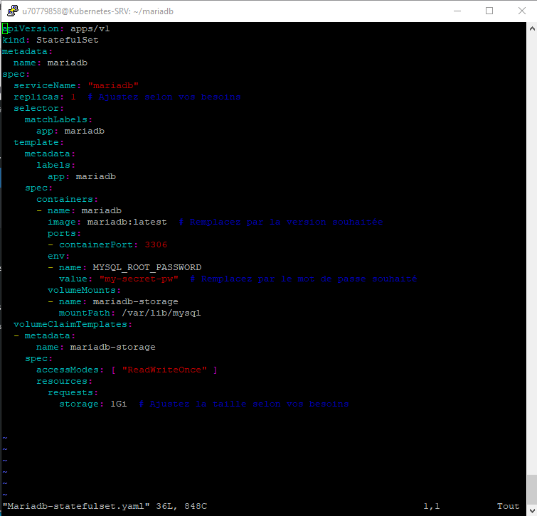 Sauvegardez ce contenu dans le fichier mariadb-statefulset.yaml et appli